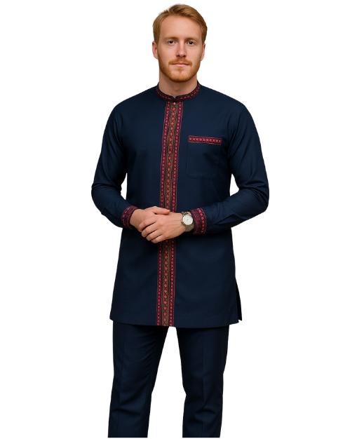 Découvrez L’élégance de Provence, un ensemble tunique et pantalon qui incarne la sobriété raffinée du style français, revisité avec une touche d’audace culturelle. Confectionné en coton mélangé de haute qualité, ce modèle offre un équilibre parfait entre confort respirant et structure élégante, idéal aussi bien pour les événements formels que les sorties décontractées.