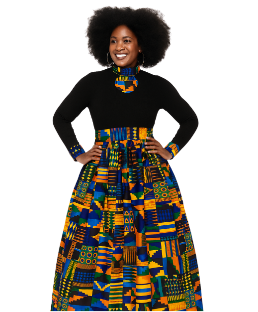 La jupe Zahra est une célébration de l’élégance africaine et de la puissance féminine. Confectionnée dans un tissu wax vibrant aux motifs géométriques traditionnels kente dans des tons chauds de jaune, bleu, orange et vert, elle allie patrimoine culturel et allure contemporaine.